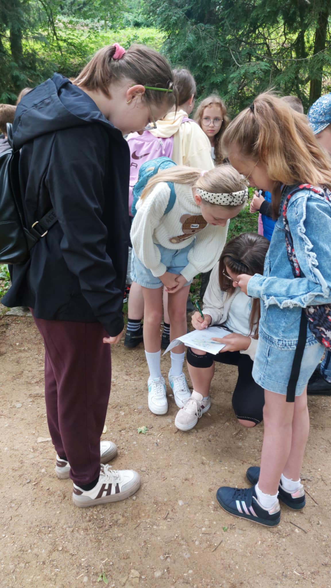Dzieci z entuzjazmem angażowały się w poszukiwania, wykazując się kreatywnością, współpracą i spostrzegawczością. Zabawa nie tylko dostarczyła im mnóstwo radości, ale także pozwoliła na rozwijanie umiejętności logicznego myślenia i pracy zespołowej. Cała akcja była świetnym połączeniem nauki, zabawy i aktywnego spędzania czasu na łonie natury.
