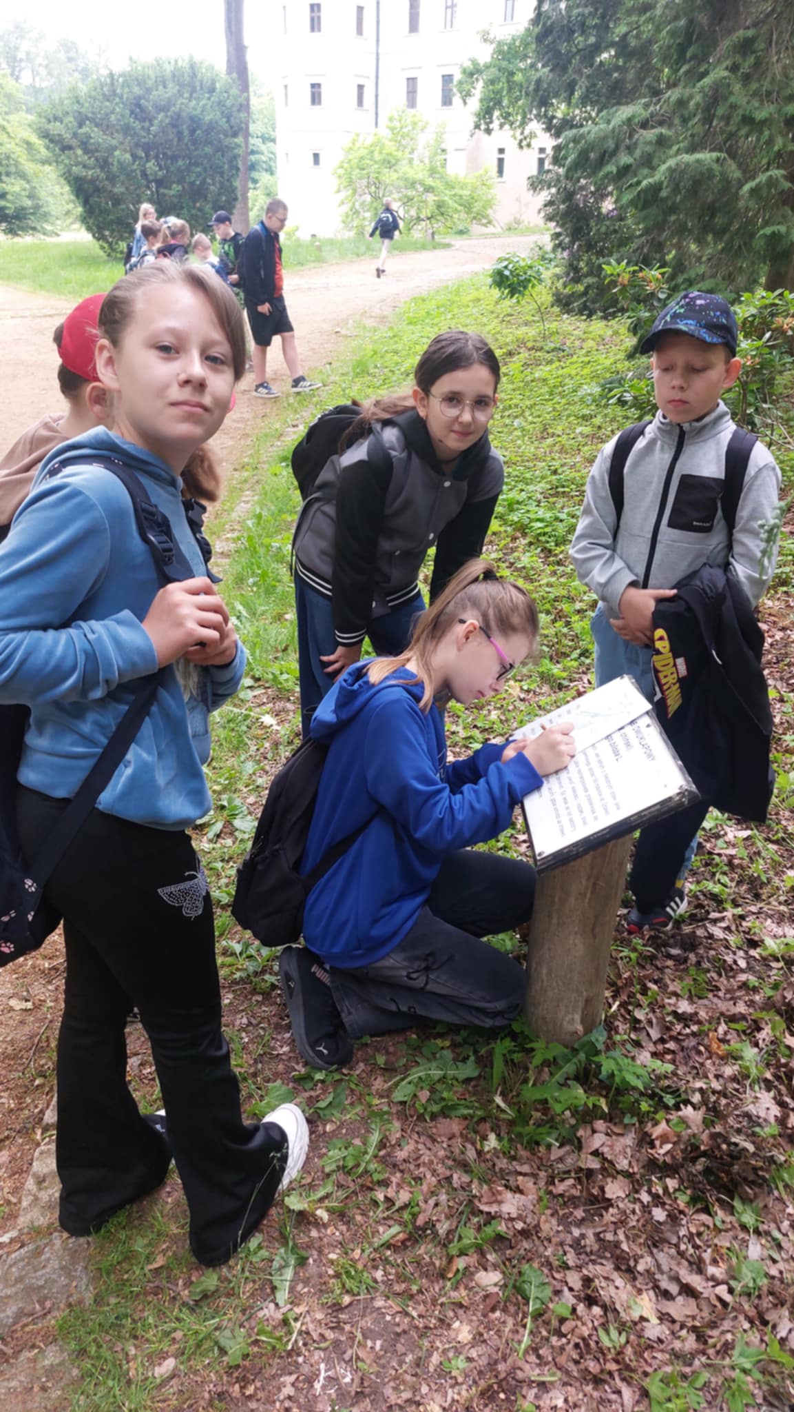 Największą atrakcją tego dnia był QUESTING – terenowa zabawa, która polegała na podążaniu nieoznakowanymi ścieżkami do wyznaczonego celu. Uczniowie mieli do dyspozycji rymowany opis questu oraz mapę, która ilustrowała trasę. Dzięki temu mogli samodzielnie planować swoje kroki, rozwiązywać zagadki i wykonywać różnorodne zadania, które prowadziły ich do finałowego celu – odnalezienia ukrytego skarbu.