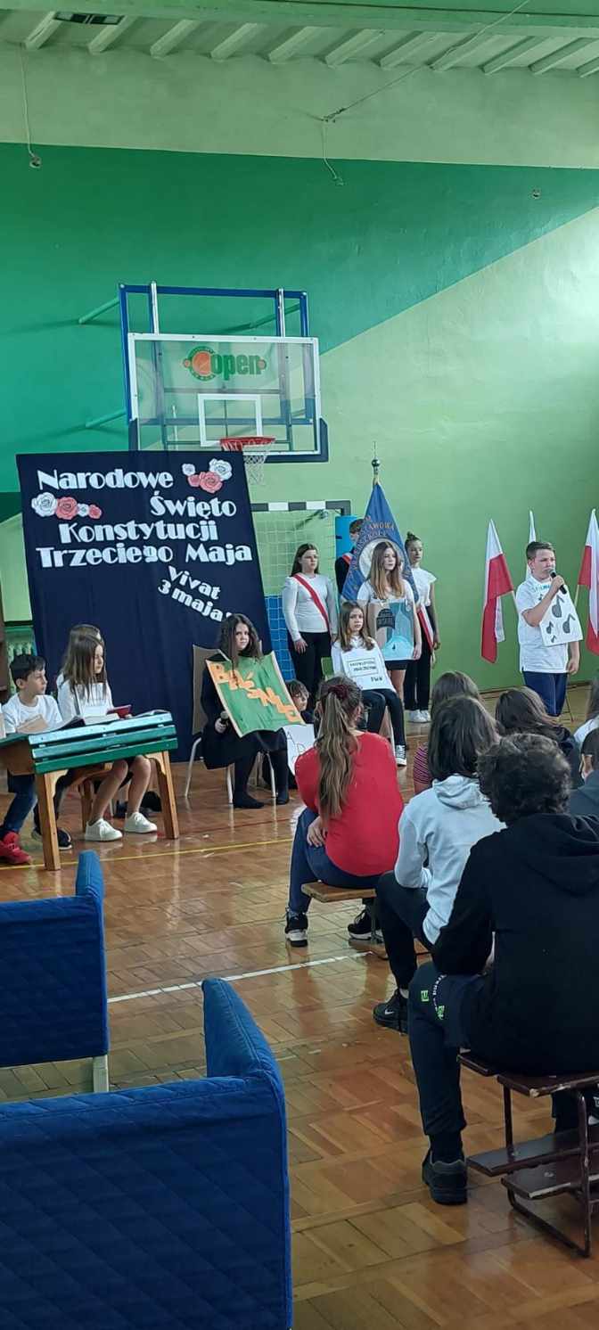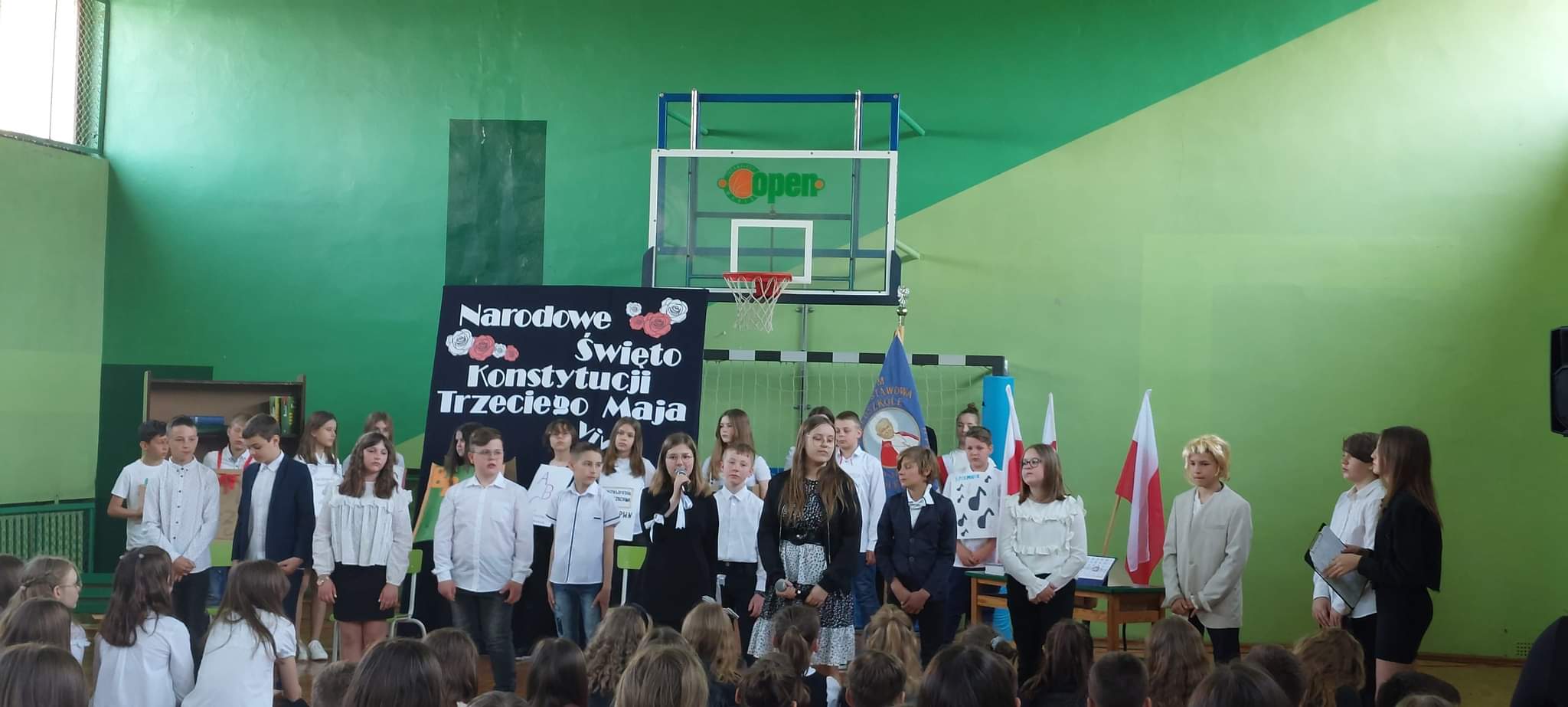 Dnia 4 maja 2022 r. w naszej szkole odbył się uroczysty apel z okazji rocznicy uchwalenia Konstytucji 3 Maja. Aby upamiętnić ten doniosły fakt, uczniowie klasy 5a i 5b, pod okiem wychowawczyń: p. Marzeny Janusz i p. Renaty Woś oraz p. Łukasza Adamskiego przygotowali montaż słowno - muzyczny o patriotycznej wymowie.