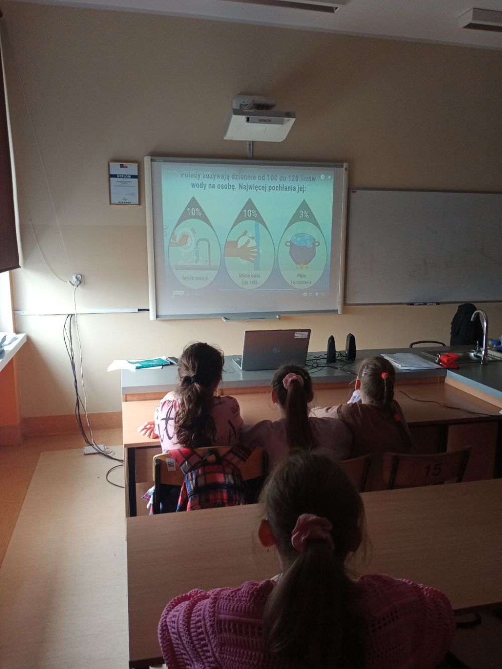 Na zajęciach z wychowawcą uczniowie obejrzeli filmiki przygotowane przez PAH, rozmawiali o znaczeniu wody dla żywych organizmów oraz zbadali właściwości wody. Na zakończenie zajęć rozwiązywali interaktywne quizy sprawdzające wiedzę na temat zastosowania wody w życiu codzienny oraz skutków jej niewłaściwego oszczędzania, a także zagrali w grę planszową „Mały hydrolog”.