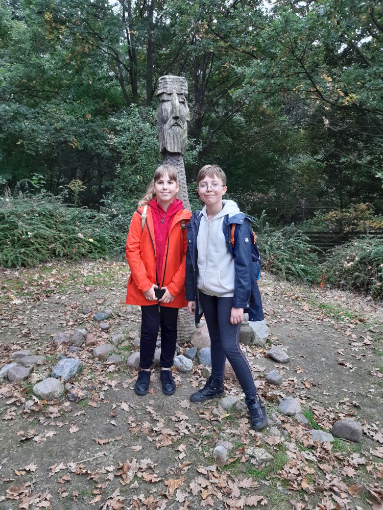 Dnia 6.10.2021 r., uczniowie klasy 5a i 5b udali się na lekcje historii do Rezerwatu Archeologicznego w Kaliszu. Dzięki rekonstrukcjom średniowiecznych budowli i urządzeń, uczniowie mieli okazję poznać dzieje i kulturę kaliskiego grodu, który jest jednym z najważniejszych miejsc związanych z początkami państwa polskiego. Podczas zwiedzania uczestnicy odwiedzili zagrodę chowu zwierząt gospodarskich takich jak: owce wrzosówki, świniodziki, kozy i kury oraz zapoznali się z średniowieczną metodą uprawy roli - trójpolówką.