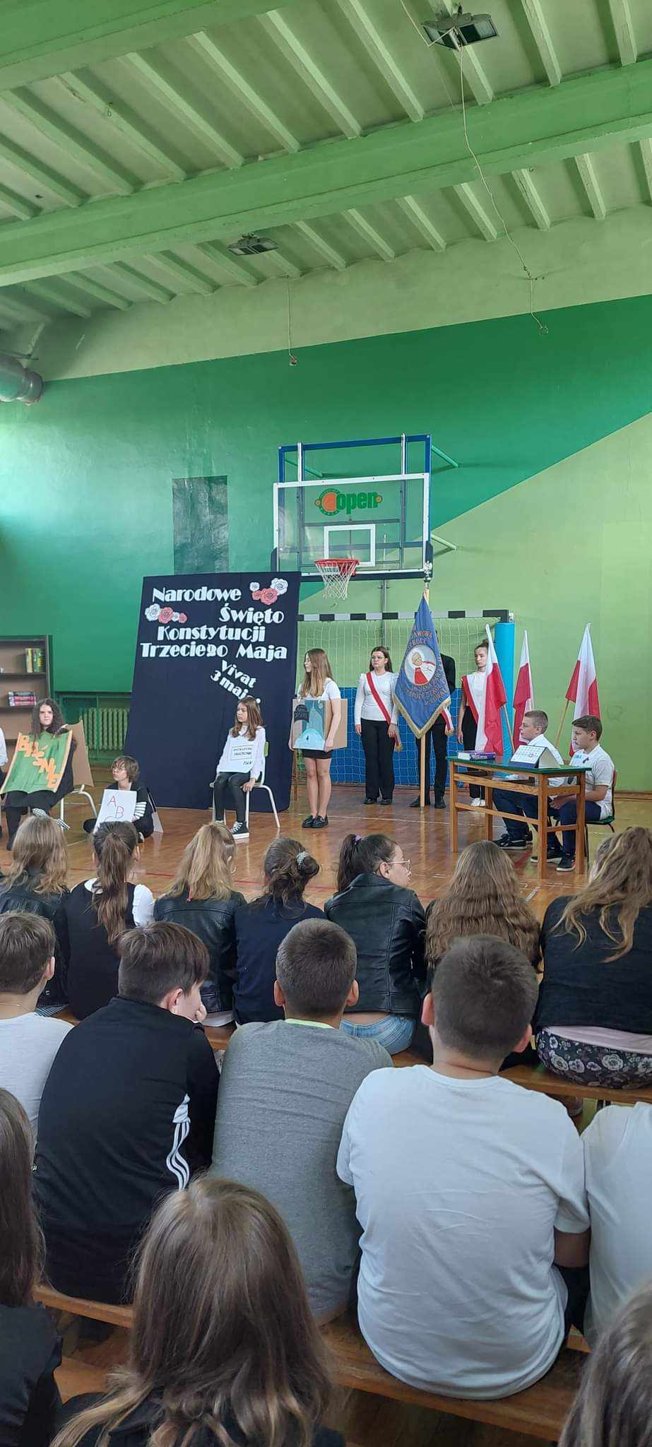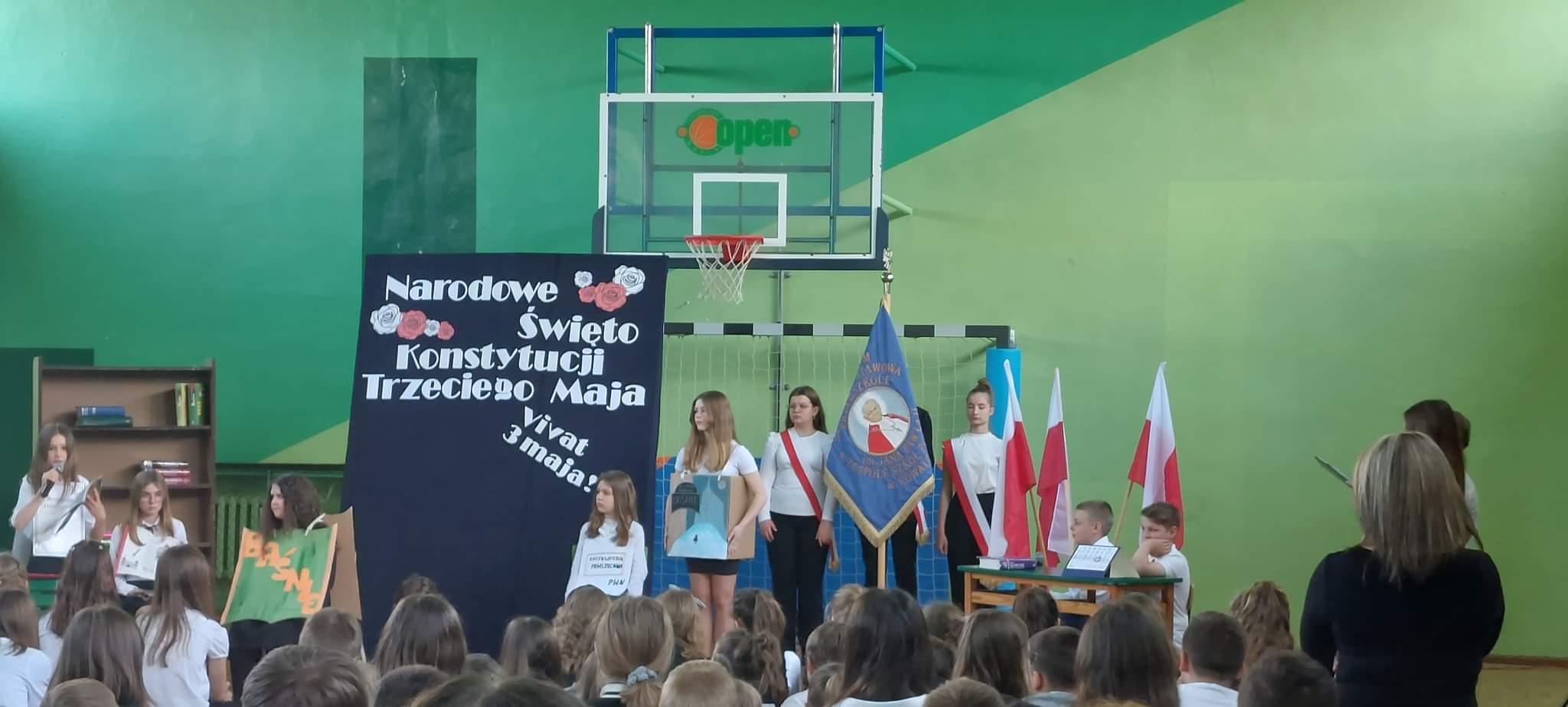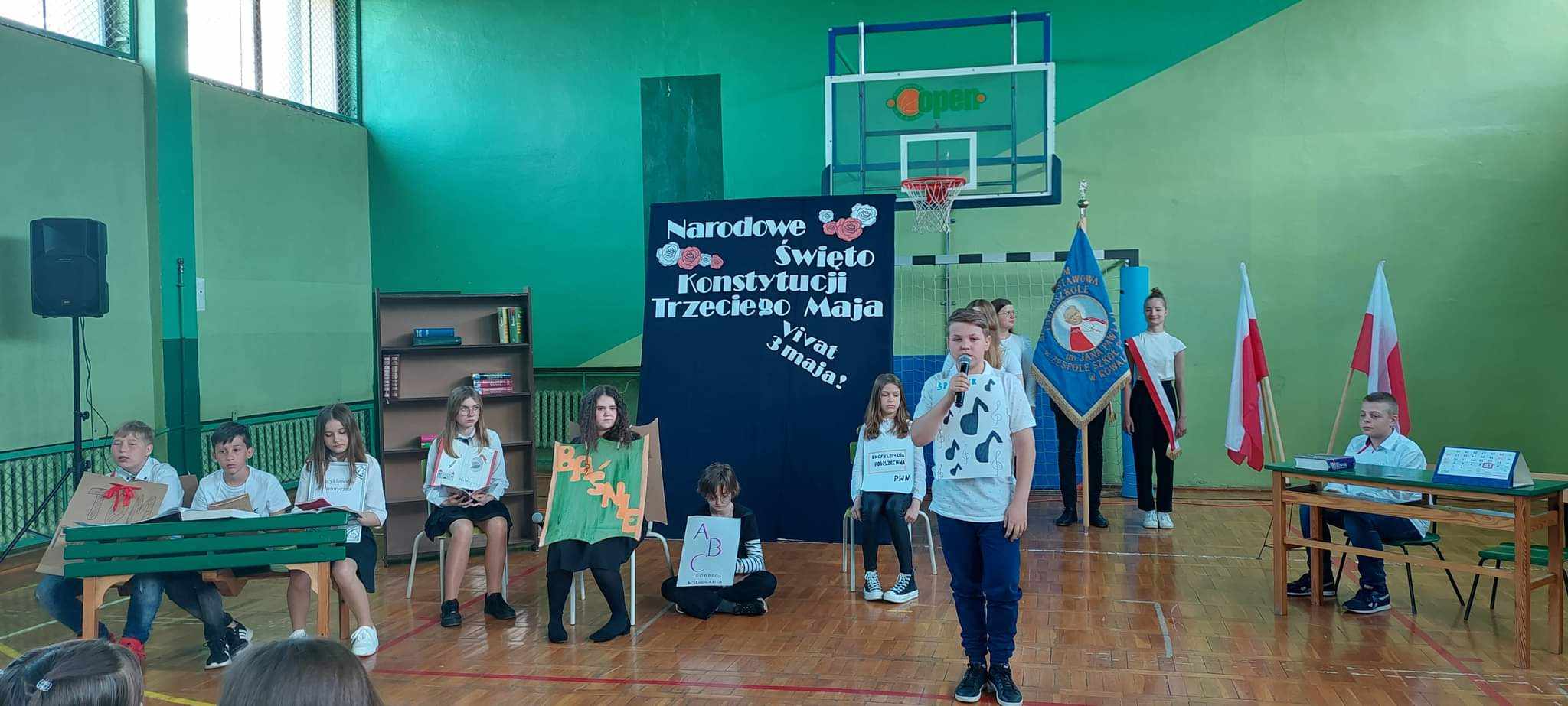 Dnia 4 maja 2022 r. w naszej szkole odbył się uroczysty apel z okazji rocznicy uchwalenia Konstytucji 3 Maja. Aby upamiętnić ten doniosły fakt, uczniowie klasy 5a i 5b, pod okiem wychowawczyń: p. Marzeny Janusz i p. Renaty Woś oraz p. Łukasza Adamskiego przygotowali montaż słowno - muzyczny o patriotycznej wymowie.