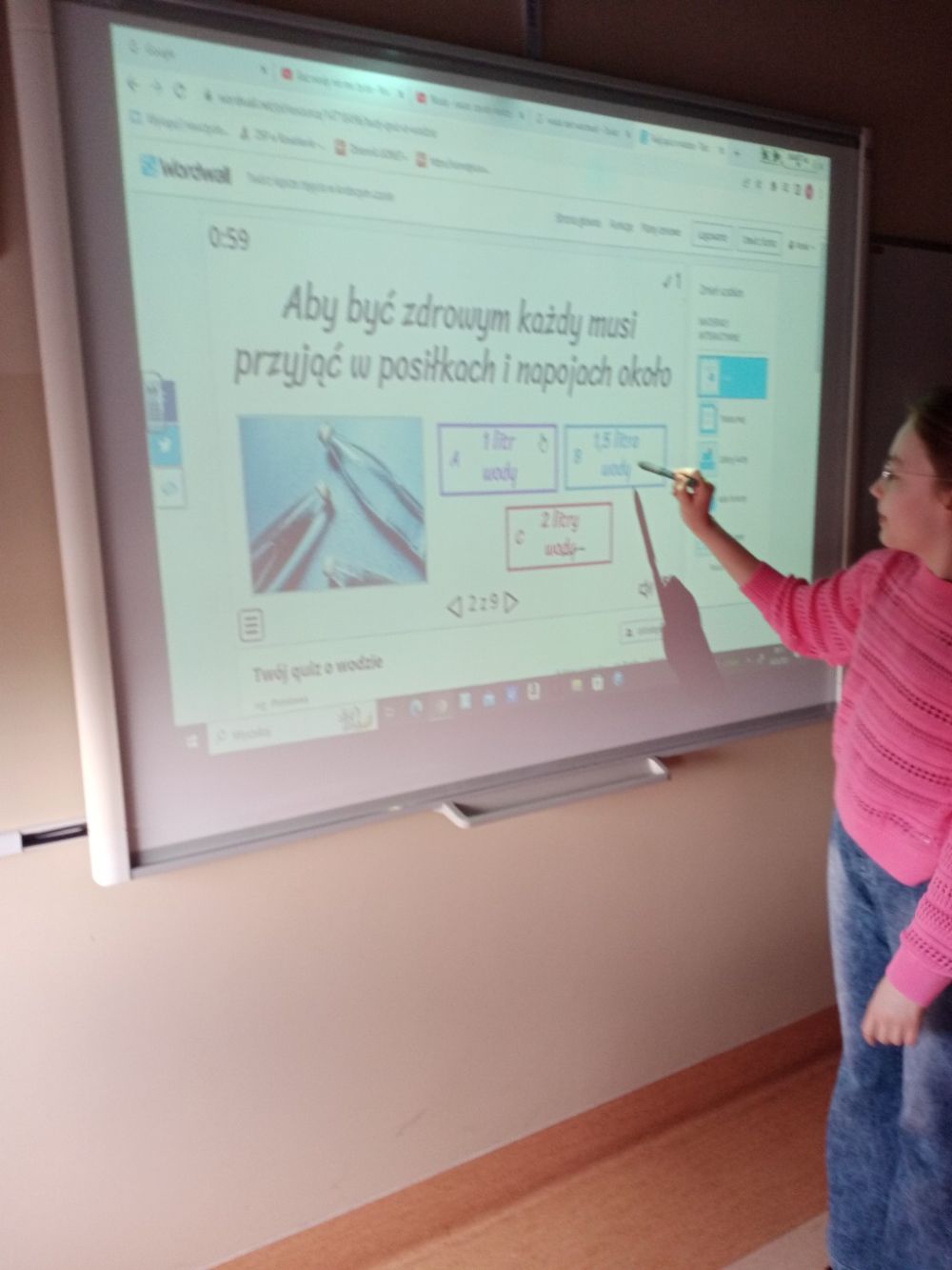 Na zajęciach z wychowawcą uczniowie obejrzeli filmiki przygotowane przez PAH, rozmawiali o znaczeniu wody dla żywych organizmów oraz zbadali właściwości wody. Na zakończenie zajęć rozwiązywali interaktywne quizy sprawdzające wiedzę na temat zastosowania wody w życiu codzienny oraz skutków jej niewłaściwego oszczędzania, a także zagrali w grę planszową „Mały hydrolog”.