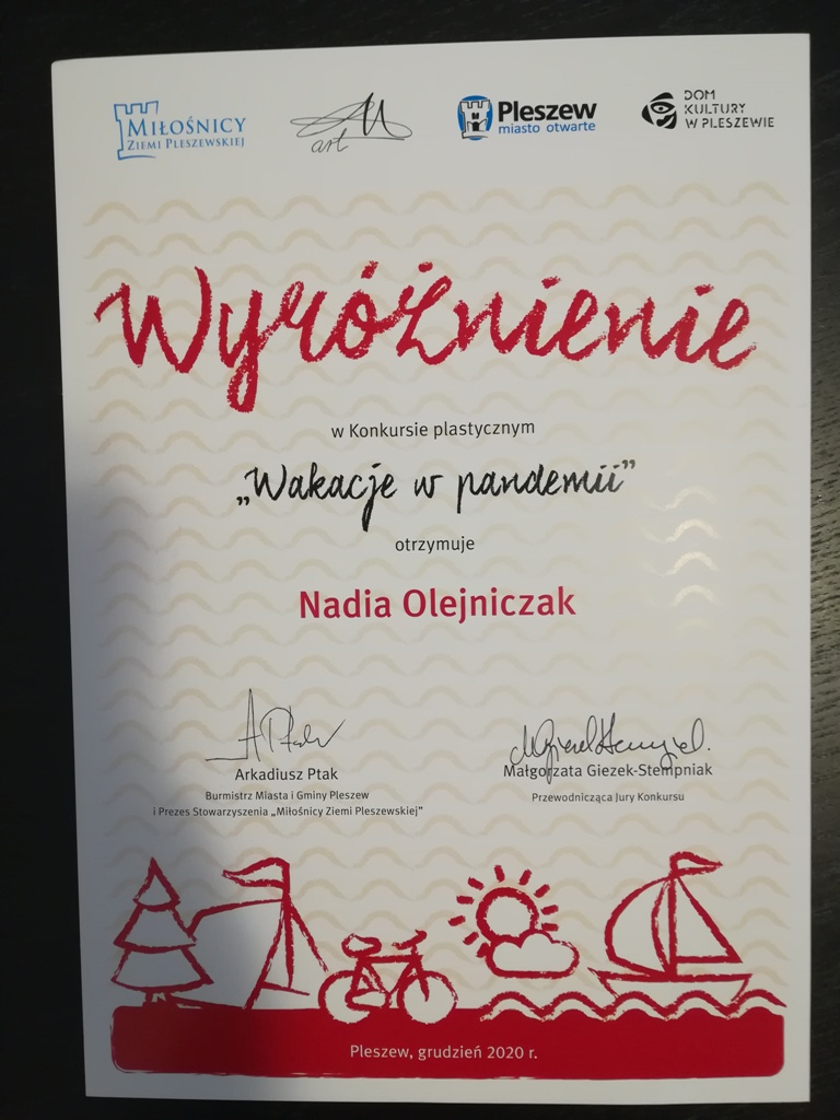 Sukces Nadii Rozstrzygnięcie konkursu plastycznego "Wakacje w pandemii" miało miejsce w grudniu 2020 r. Czytaj więcej...