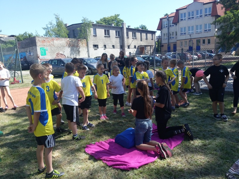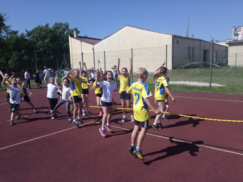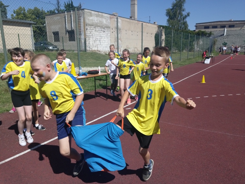 Natomiast uczniowie z klas IV-VI rywalizowali min. w biegu z przyborem, kozłowaniu piłki po slalomie, sadzeniu ziemniaków, sztafecie wahadłowej, rzutach piłki do kosza na czas oraz strzelaniu do bramki.