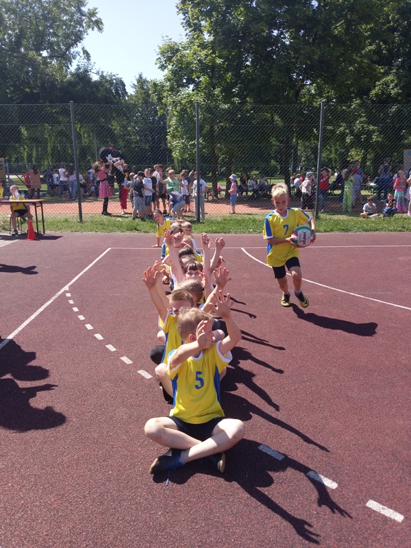 Uczniowie z klas II- III uczestniczyli w różnych konkurencjach sportowych min. w sadzeniu ziemniaków, wyścigu z woreczkiem, rzutach do celu na czas, wyścigu z piłką w rzędach, wyścigu braci syjamskich oraz przeciąganiu liny.