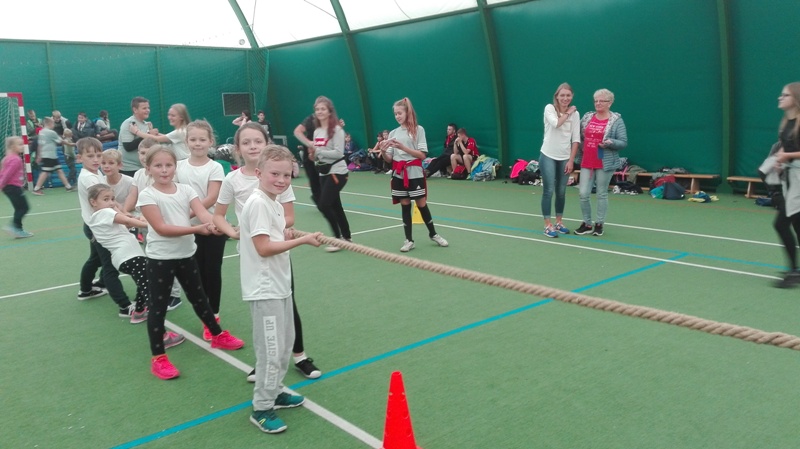 W rozgrywkach drużynowych wzięła udział grupa naszych uczniów z III klas szkoły podstawnej. Uczestnicy rywalizowali w różnych konkurencjach np. bieg ze skakanką, wyścigi raków, bieg z pałeczką sztafetową, przewlekanie szarfy, rzuty do celu oraz przeciąganie liny.