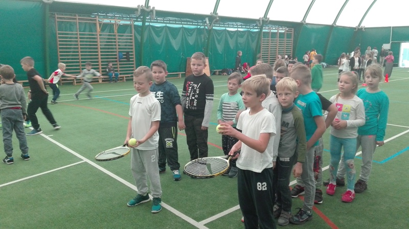 Następnie uczniowie uczestniczyli w pokazach tenisa ziemnego zorganizowanego przez Pleszewskie Towarzystwo Tenisowe. Dzieci biorące udział w konkurencjach tenisa ziemnego otrzymały pamiątkowe medale, a Nadia Działoszyńska kl. IIIa dostała puchar za zajęcie III miejsca w podbijaniu piłki na rakiecie tenisowej.
