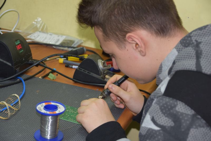 Grupa uczniów Szkolnego Centrum Innowacji: Kacper Bamberski, Jakub Barański, Piotr Marchwiak i Krystian Urbaniak pod opieką Teresy Zielińskiej gościła 11 stycznia 2018 r. w firmie FOSTER pana Eugeniusza Fengiera, gdzie uczyła się precyzyjnego lutowania. Ta umiejętność jest niezbędna do budowy drona. Tajniki profesjonalnego lutowania pokazał uczniom sam Szef firmy oraz Jego pracownicy,