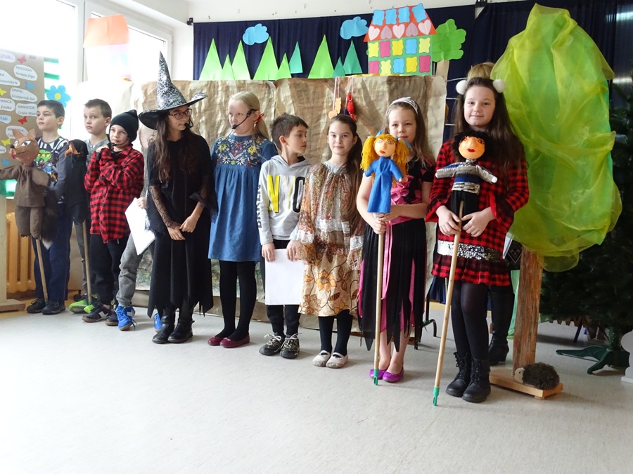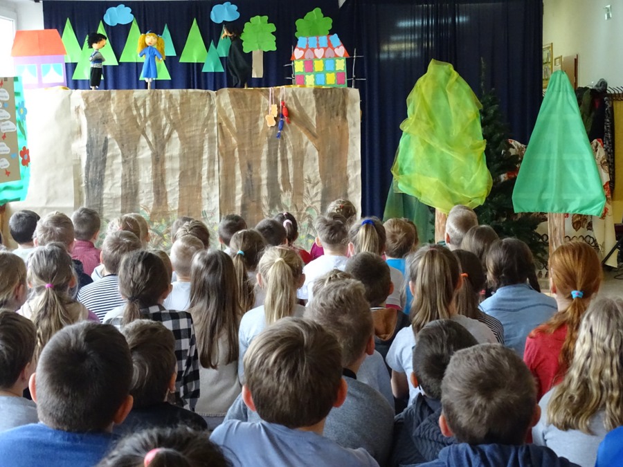 Uczniowie klasy III A wspólnie z wychowawczynią przygotowali przedstawienie kukiełkowe dla klas I-III i oddziałów przedszkolnych pt. "Jaś i Małgosia”.