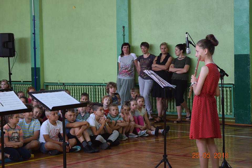Pani Maria Garsztka - nauczycielka fletu oraz Pan Maciej Sołtysiak – nauczyciel saksofonu omówili z czego zbudowany jest flet, saksofon, co zrobić żeby nauczyć się gry na tych instrumentach. Oczywiście nie zabrakło muzyki, a tematem były motywy bajkowe i filmowe. W wykonaniu flecistki Katarzyny Pilarskiej usłyszeliśmy przeboje z filmu "101 Dalmatyczyków", a Pan Maciej zaprezentował temat z filmu "Różowa Pantera" oraz "Krainy lodu".