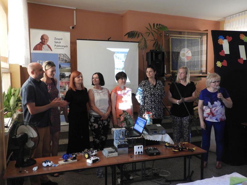 Jak zawsze podczas konferencji, swój czas mieli także uczniowie Szkolnego Centrum Innowacji oraz uczniowie kółka informatycznego, którzy zaprezentowali swoje osiągnięcia. Ci najmłodsi pokazywali jak łatwo i przyjemnie można programować roboty, zaś uczniowie SCI, zaprezentowali zbudowanego przez siebie drona. Warto przy tym wspomnieć, że zajęcia, podczas których uczniowie budowali drona, odbywały się we współpracy z młodzieżą z Pompano Beach High School na Florydzie. Uczniowie SCI Kowalew dzięki zastosowaniu różnych środków technologii współpracowali z amerykańskimi rówieśnikami, którzy realizowali podobny projekt, wymieniając się między sobą doświadczeniami poprzez m.in. sesje Skype.