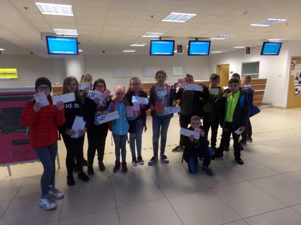 Piątego kwietnia uczniowie klasy VB wraz z opiekunami p. Katarzyną Sikorą i p. Małgorzatą Włodarczyk zwiedzili lotnisko im. Władysława Reymonta w Łodzi-Lublinku, gdzie uczestniczyli w odprawie pasażerskiej, kontroli bezpieczeństwa, byli obserwatorami przygotowania samolotu do odlotu a także wzięli udział w pogadance z sokolnikiem, który w fantastyczny sposób przedstawił tajniki swojej pracy.