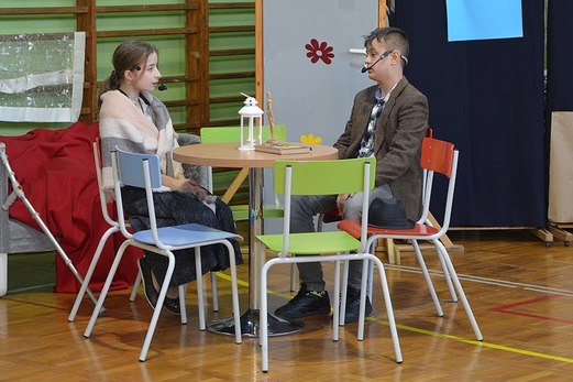 Grudzień to zawsze miesiąc szczególny. W domach pachnie pysznymi potrawami, wszyscy biegamy w ferworze świątecznych przygotowań, pakujemy prezenty, sprzątamy… W szkołach szykujemy kolejne jasełka – ze żłóbkiem, pastuszkami i wszystkim, co przypomina nam narodziny Boga Wcielonego. Nie odbiegając zbyt daleko od tej tradycji, za sprawą uczniów klasy IVa i VIc, spojrzeliśmy w tym roku z nieco innej strony i przypomnieliśmy sobie, co tak naprawdę jest ważne – w Boże Narodzenie i w każdym czasie. Uczniowie przygotowali piękne przedstawienie pt."Szczęście zależy od nas samych".