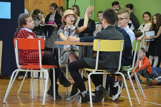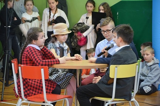 Dziękujemy uczniom klasy IVa: Lence Kozieras, Nadii Słowińskiej, Bartkowi Szymczakowi, Alanowi Antczakowi, Maciejowi Brajerowi, Oliwii Krawczyk, Lence Łokietek, Stasiowi Olejniczakowi, Nikoli Pachciarek, Zosi Sobczak i Gabrysi Wojnowskiej oraz uczniom z klasy VIc: Bartkowi Migalskiemu, Kindze Musielak, Bartkowi Paterczykowi, Marcysi Wolniak, Julce Kalińskiej, Julce Frankowskiej, Nikoli Guz, Nikodemowi Liberackiemu, Alexowi Marciniakowi, Pawłowi Młodakowi, Nikoli Niewiada, Jasiowi i Piotrowi Piaseckim, a także Tomkowi Roblowi za wspaniały występ, do którego przygotowali: Łukasz Adamski i Teresa Zielińska