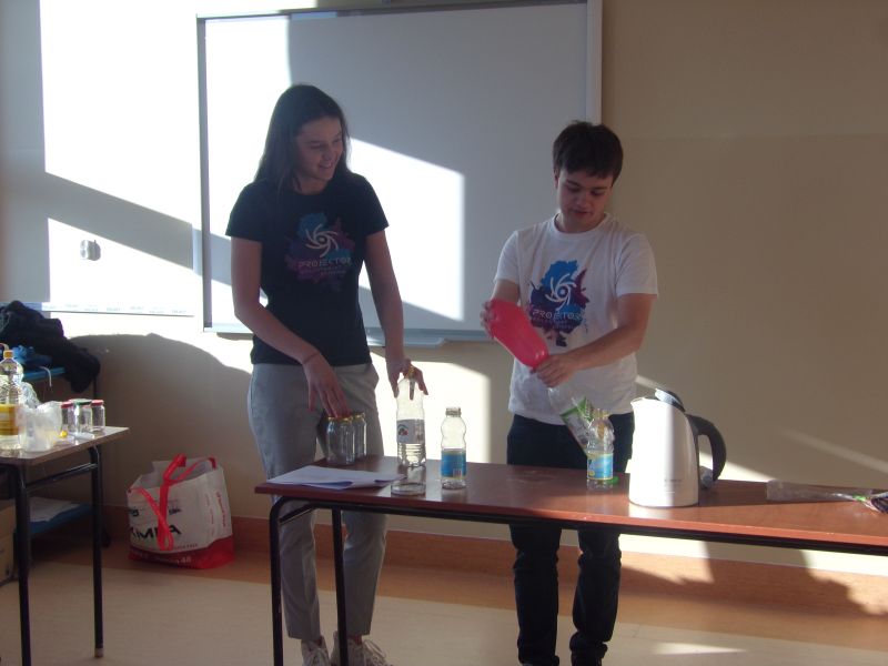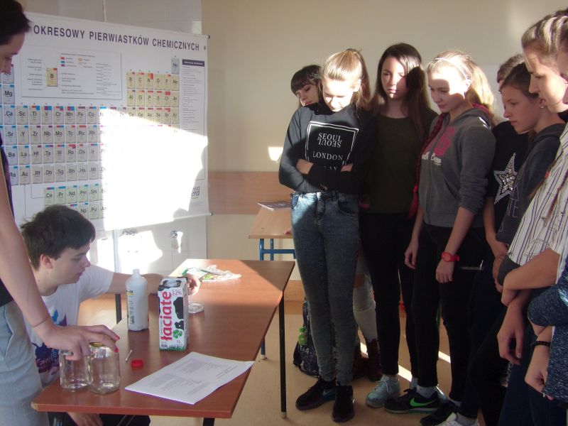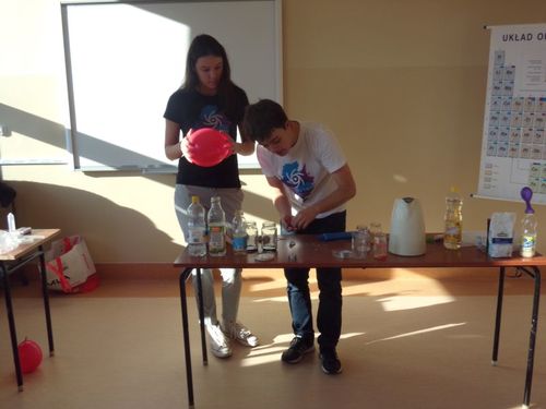 W dniu 19 września Ola i Adam (studenci) przeprowadzili zajęcia z chemii dla uczniów klas II gimnazjum.