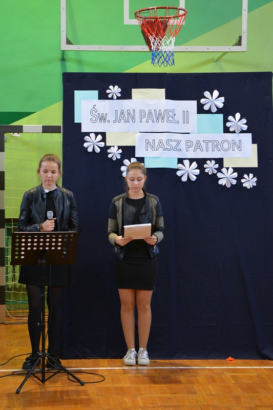 Na początku głos zabrała Pani wicedyrektor Aldona Jańczak, która przedstawiła Jana Pawła II jako wielkiego przyjaciela wszystkich ludzi. W swoim wystąpieniu podkreśliła jak ważne były dla Papieża dzieci oraz życzyła wszystkim, aby słowa przez niego wypowiedziane "padały na żyzne gleby naszych serc".