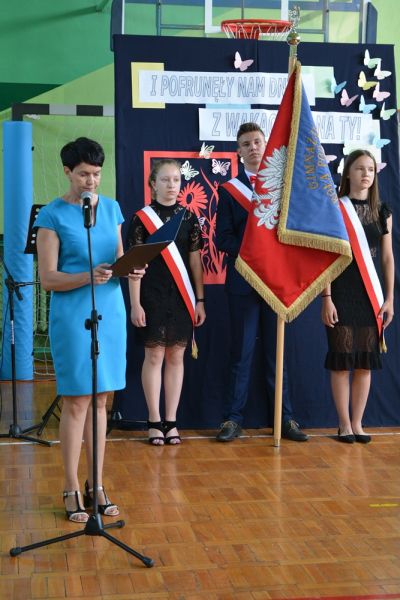 Uroczyste zakończenie roku szkolnego 2018/2019 składało się z dwóch części. O godz. 8.00 pod przewodnictwem Ks. Proboszcza Wiesława Kondratowicza została odprawiona Msza święta dziękczynna w intencji uczniów, rodziców i wszystkich pracowników szkoły, a następnie w sali gimnastycznej Pani Dyrektor Elwira Łucka wręczyła uczniom świadectwa z wyróżnieniem, dyplomy i nagrody za sukcesy w konkursach przedmiotowych, artystycznych, sportowych oraz za działalność w Samorządzie Uczniowskim.