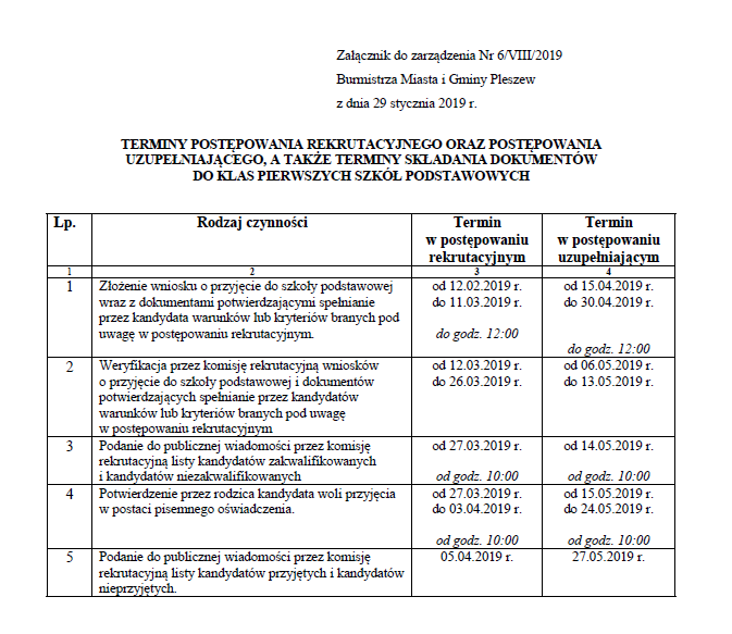 Rekrutacja do klas I szkoły podstawowej