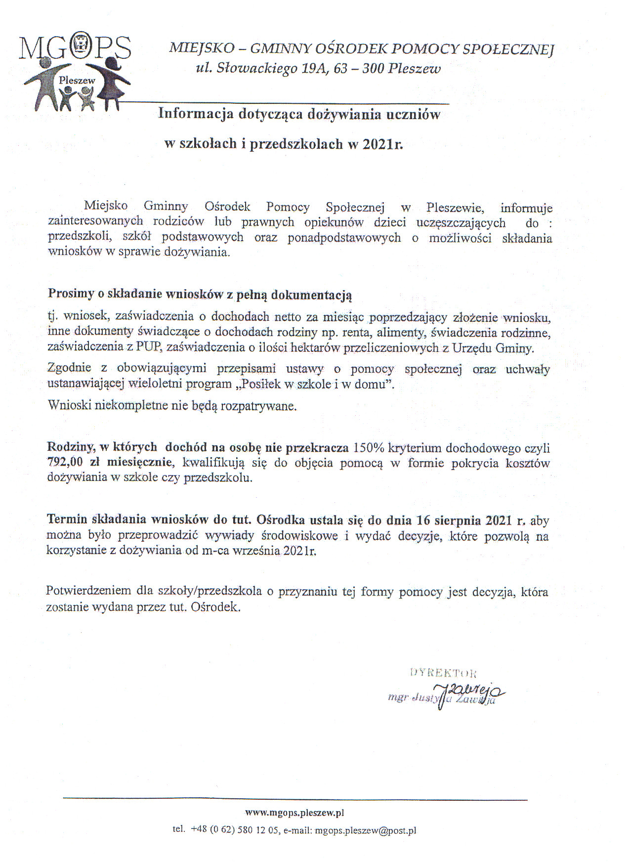Dożywianie uczniów w szkołach i przedszkolach Informacja dotycząca dożywiania uczniów w szkołach i przedszkolach