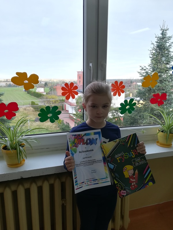 Zadaniem dzieci było przedstawienie swojego ulubionego bohatera literackiego, motywu lub wydarzenia. Uczniowie wykonywali prace tradycyjnymi technikami plastycznymi. Przy ocenie prac brano pod uwagę m.in. ich oryginalność i pomysłowość. Wyróżnienie w kategorii klas I – III zdobyła Maja Grześkowiak, uczennica klasy I b szkoły podstawowej.