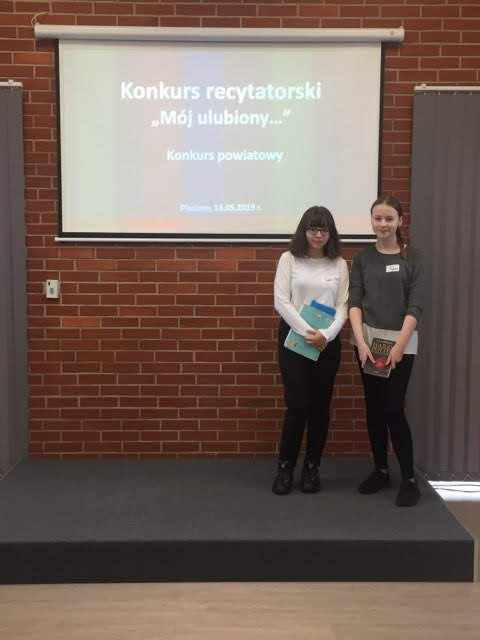 Wiktoria Stoppok z kl.VIa, Nina Kuberacka z kl.VIb, Iga Krawczyk z kl. VIII i Maja Marciniak z kl. VIII reprezentowały naszą szkołę w Powiatowym Konkursie Recytatorskim ph.”Mój ulubiony…”, który odbył się, w dwóch kategoriach wiekowych, 16 i 23 maja w Bibliotece Publicznej Miasta i Gminy Pleszew.