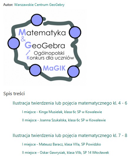 Podwójny sukces naszych uczennic z klasy VI c - Kingi Musielak i Joanny Szukalskiej, które zostały laureatkami Ogólnopolskiego Konkursu Matematyka i GeoGebra w kategorii Ilustracja twierdzenia lub pojęcia matematycznego.