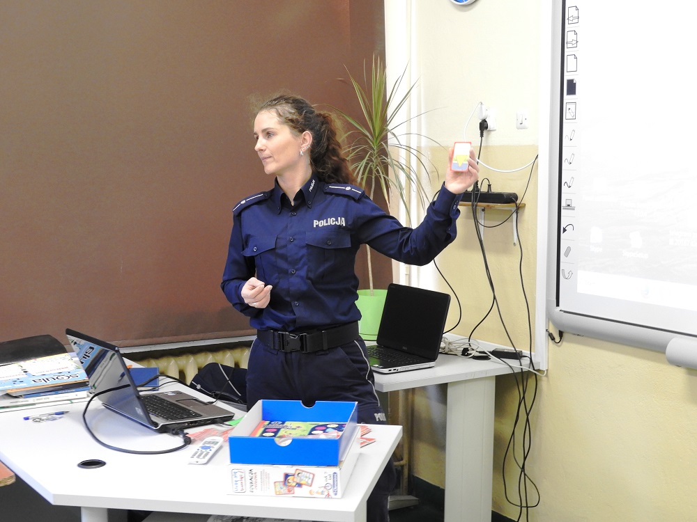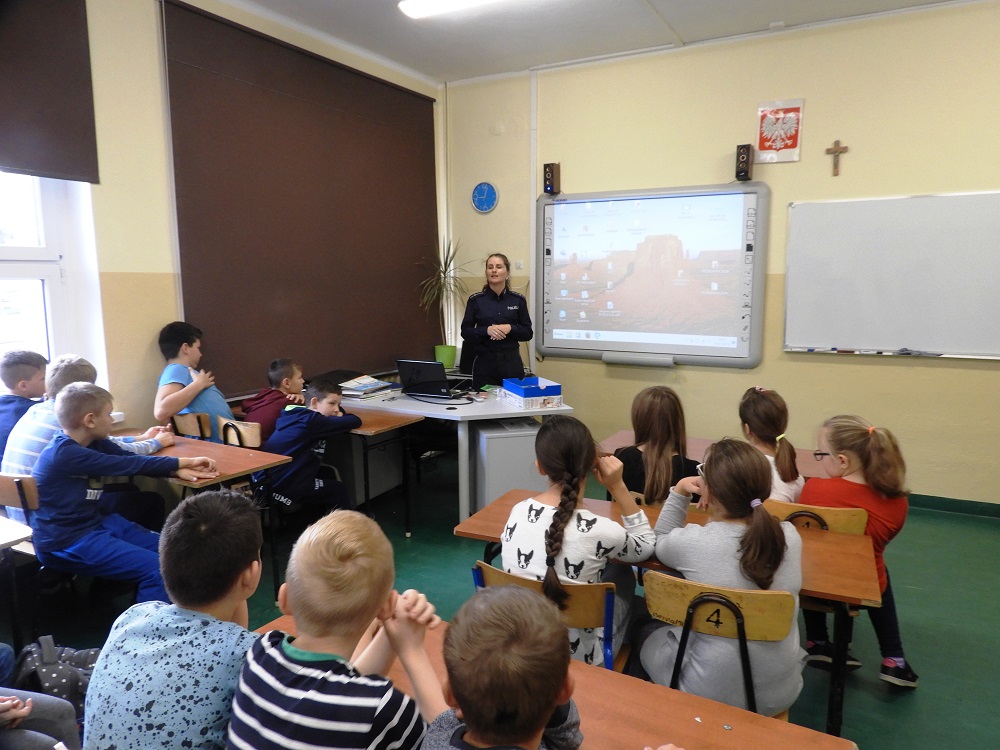 W październiku uczniowie naszej szkoły uczestniczyli w spotkaniach z Panią Moniką Lis – Rybarczyk z Komendy Powiatowej Policji w Pleszewie. Tematem spotkań była bezpieczna droga do szkoły i zasady. Pani Lis – Rybarczyk przypomniała uczniom jak należy się zachowywać w czasie drogi do i ze szkoły.