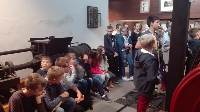 Uczniowie pod kierunkiem przewodnika poznali historię i technikę powstawania książki. Zwiedzili dawną maszynownię fabryczną, maszyny do produkcji tkanin, maszyny parowe oraz silniki parowe, które wykorzystywane były do napędzania wszelkich urządzeń w dawnej fabryce. Następnie obejrzeli salę mieszczącą wyroby z porcelany.