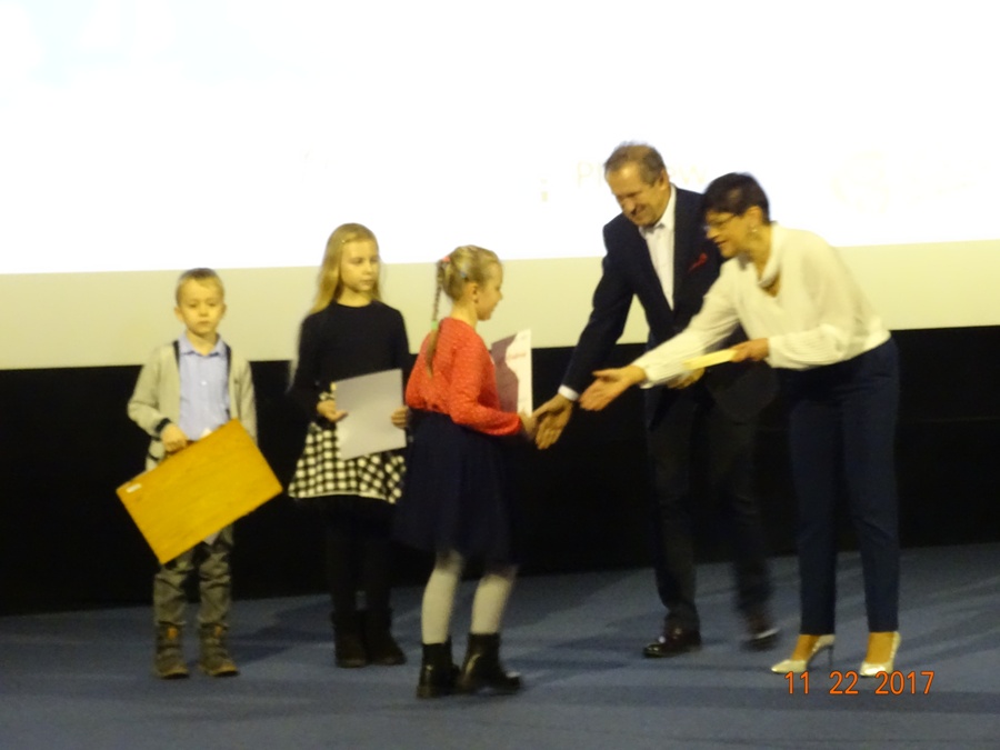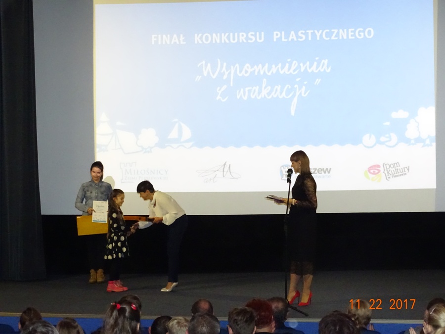 Finał konkursu plastycznego odbył się w środę, 22 listopada w kinie HEL. Jury miało trudne zadanie, bo musiało wybrać te najpiękniejsze wspomnienia z wakacji spośród 282 nadesłanych prac. Na uroczyste wręczenie nagród zostało zaproszonych 3 uczniów z naszej szkoły. Nagrodę Galerii Sztuki Użytkowej Art M zdobyła Nadia Działoszyńska z klasy III a. Wyróżnienia zdobyli: Wiktoria Krzemień z klasy I a, oraz Bartosz Kycia z klasy III a. Gratulujemy i życzymy dalszych sukcesów.