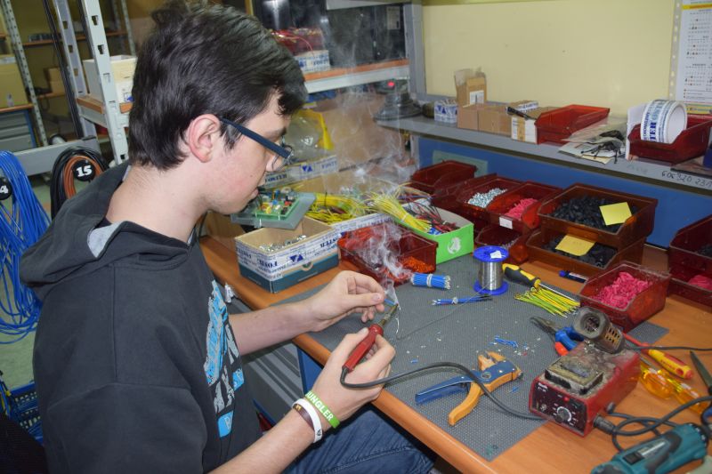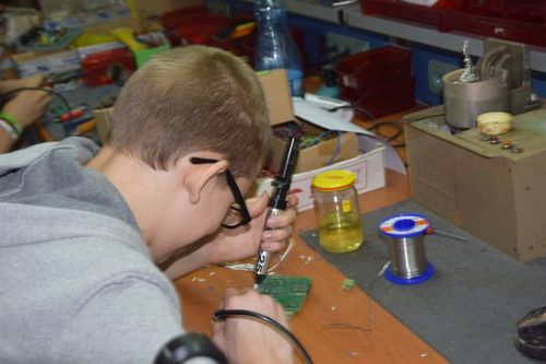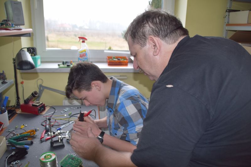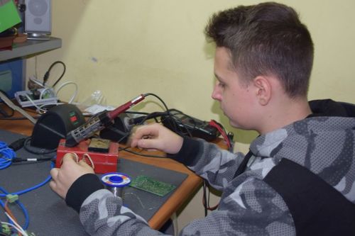 Grupa uczniów Szkolnego Centrum Innowacji: Kacper Bamberski, Jakub Barański, Piotr Marchwiak i Krystian Urbaniak pod opieką Teresy Zielińskiej gościła 11 stycznia 2018 r. w firmie FOSTER pana Eugeniusza Fengiera, gdzie uczyła się precyzyjnego lutowania. Ta umiejętność jest niezbędna do budowy drona. Tajniki profesjonalnego lutowania pokazał uczniom sam Szef firmy oraz Jego pracownicy,