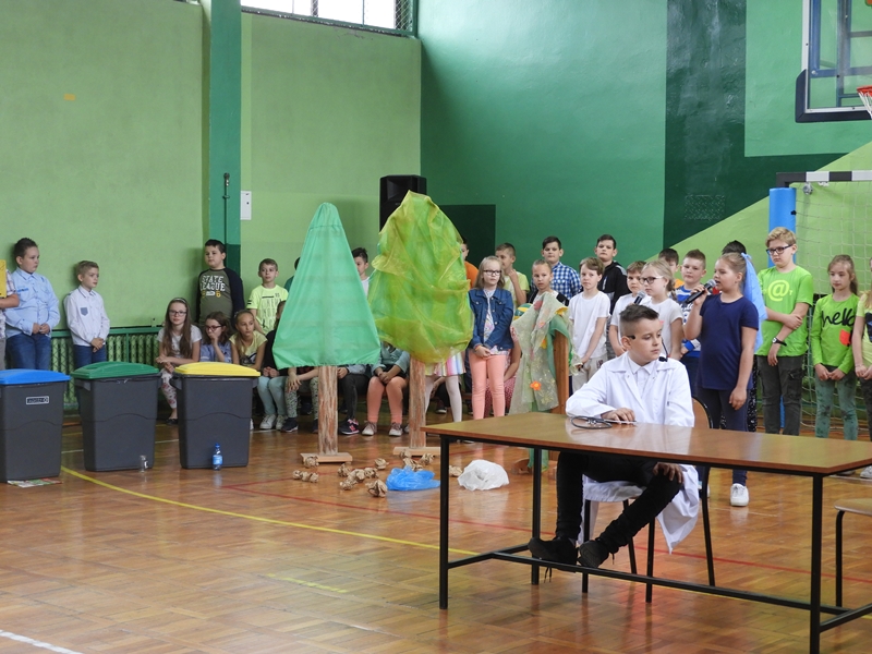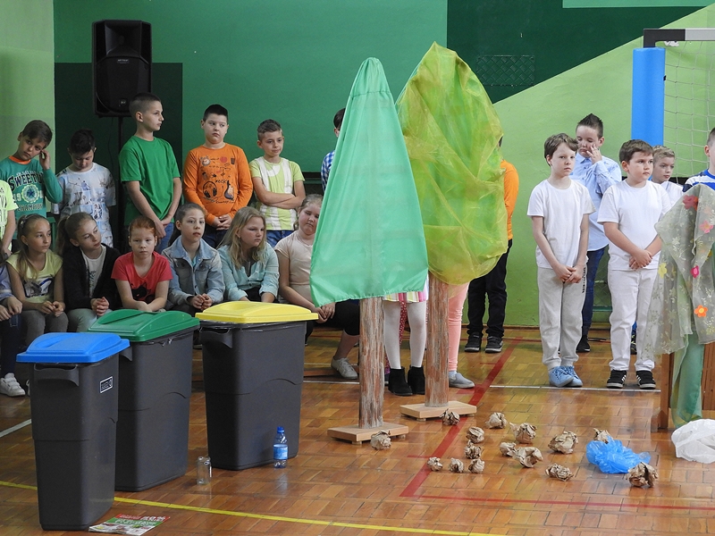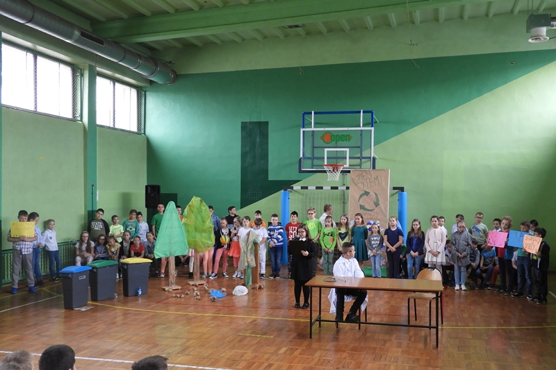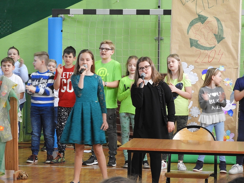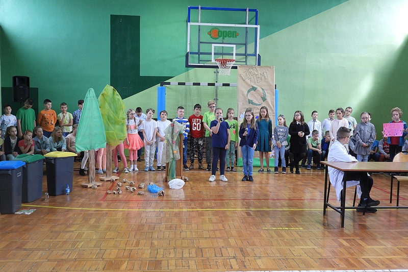 Dzieci przypomniały, że Ziemia jest naszym wspólnym dobrem i trzeba o nią dbać. Przedstawienie uświetniły piosenki o tematyce ekologicznej i informacje na temat Dnia Ziemi, jego powstania i tradycji. Ważnym elementem przedstawienia była segregacja śmieci, które wrzucono do stojących koszy. Wszyscy zrozumieli, że tylko w ten sposób można walczyć o czyste lasy, podwórka, drogi, place zabaw.