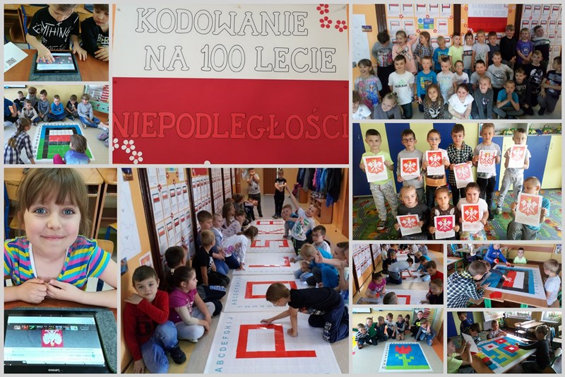 Kodowanie na 100-lecie Niepodległości Na 100-lecie Niepodległości uczniowie klas pierwszych szkoły podstawowej zakodowali 100 flag, ale nie tylko. Były też godła Polski oraz kwiaty w barwach narodowych. Czytaj więcej...