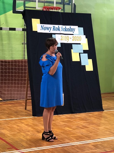 Następnie zwróciła się do uczniów z życzeniami wielu sukcesów, zaś nauczycielom życzyła wytrwałości, a rodzicom satysfakcji z osiągnięć swoich dzieci. Na zakończenie akademii, Pani Wicedyrektor Aldona Jańczak przedstawiła wychowawców i uczniów klas pierwszych i czwartych.