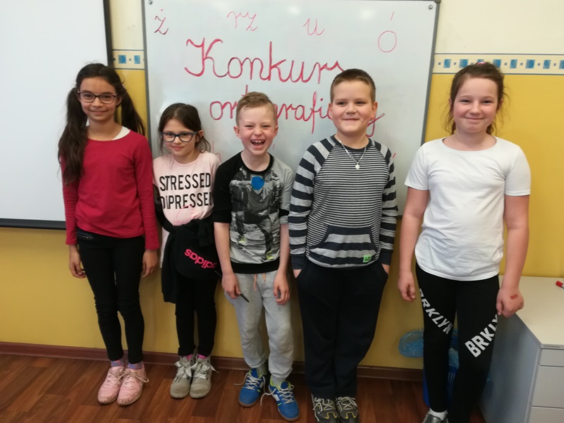 Najlepszy okazał się Wojciech Kubasik, II miejsce zdobyła Julia Buszyk. Uczniowie ci oraz Lena Ulka (laureatka Teleturnieju Ortograficznego) będą reprezentowali naszą szkołę w I Konkursie Ortograficznym „Mistrz ortografii 2018” dla uczniów klas trzecich Miasta i Gminy Pleszew, który odbędzie się 09 maja 2018r. w ZSP w Lenartowicach.