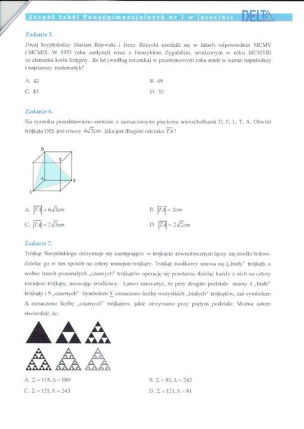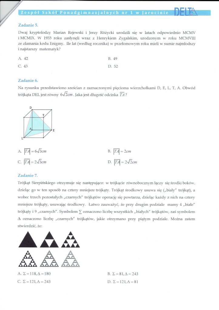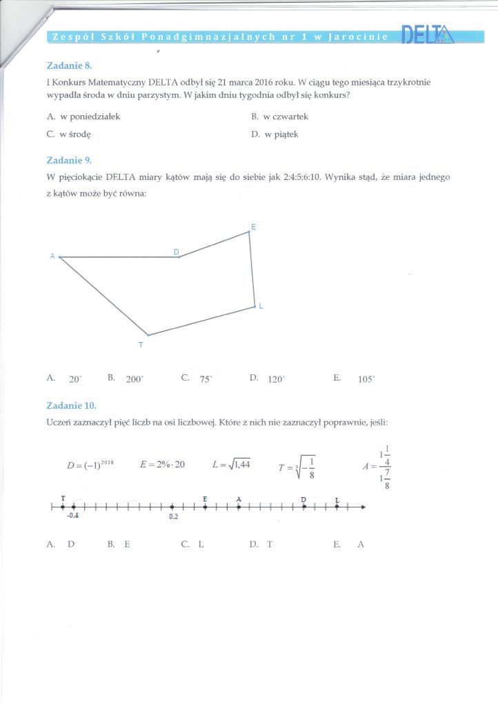 Zadania obejmowały nie tylko zakres materiału z gimnazjum, ale również pewne partie materiału ze szkoły ponadgimnazjalnej. Tym bardziej cieszymy się, że nasi uczniowie mają wiedzę i umiejętności matematyczne znacznie wykraczające poza program gimnazjum.