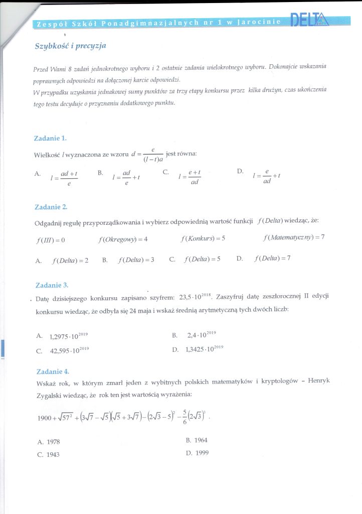 II etap: Szybkość i precyzja - należało w jak najkrótszym czasie rozwiązać 10 zadań zamkniętych.