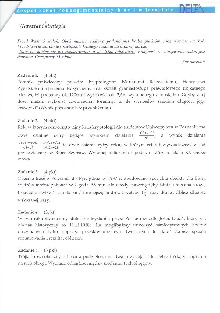 I etap: Warsztat i strategia - uczniowie mieli do rozwiązania 5 zadań otwartych.
