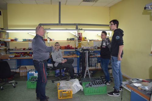 Grupa uczniów Szkolnego Centrum Innowacji: Kacper Bamberski, Jakub Barański, Piotr Marchwiak i Krystian Urbaniak pod opieką Teresy Zielińskiej gościła 11 stycznia 2018 r. w firmie FOSTER pana Eugeniusza Fengiera, gdzie uczyła się precyzyjnego lutowania. Ta umiejętność jest niezbędna do budowy drona. Tajniki profesjonalnego lutowania pokazał uczniom sam Szef firmy oraz Jego pracownicy,